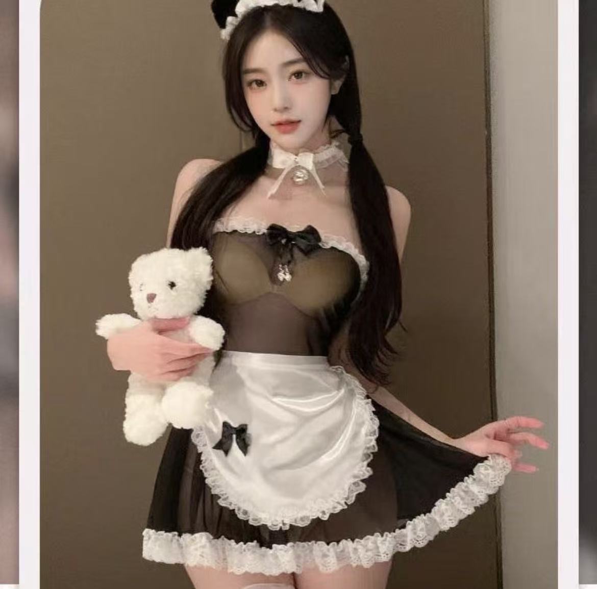 [霏慕]情趣甜心制服套装女仆女佣均码乖巧透视抹胸情趣内衣连衣裙