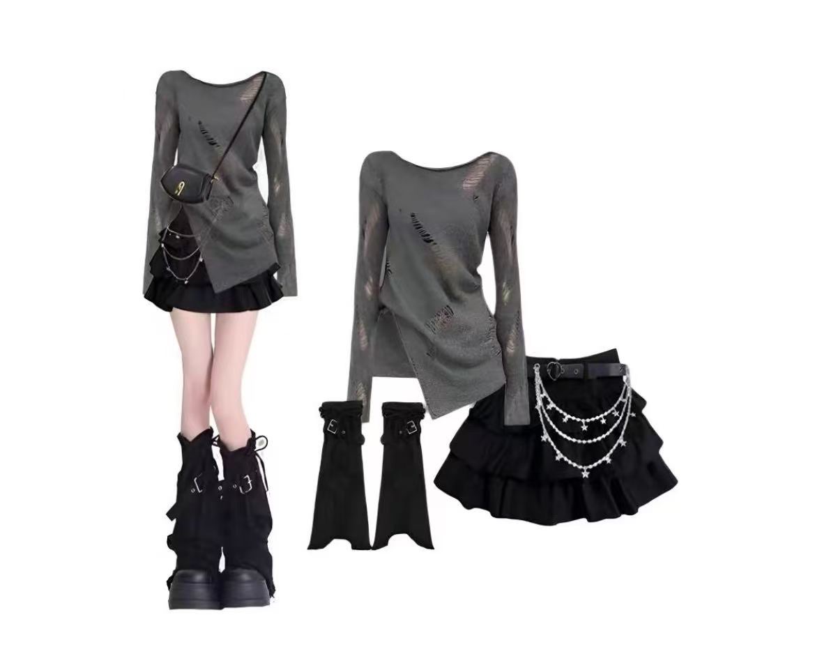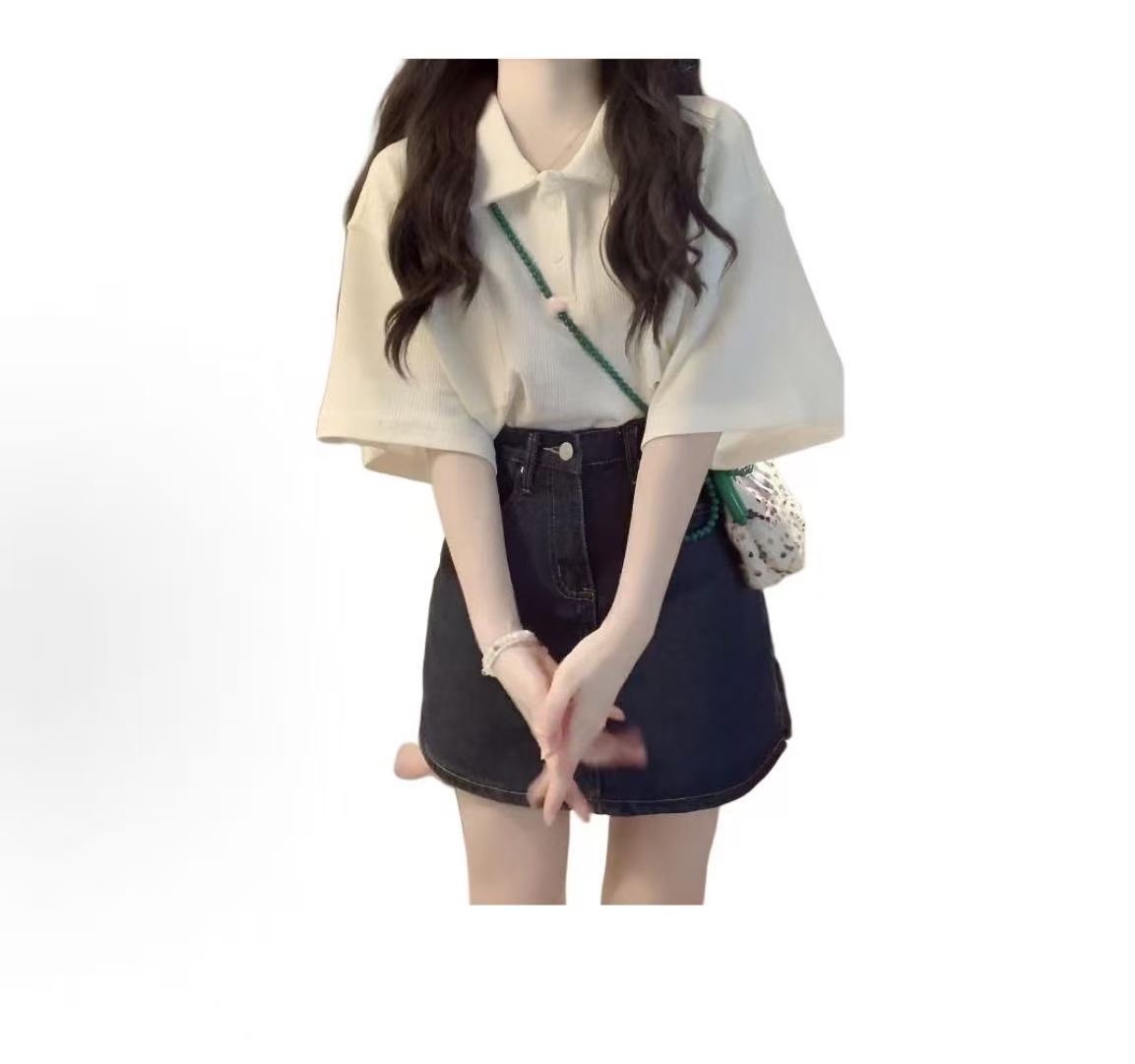 小个子奶系穿搭polo领短袖t恤半身短裙减龄两件 裙装套装 女款